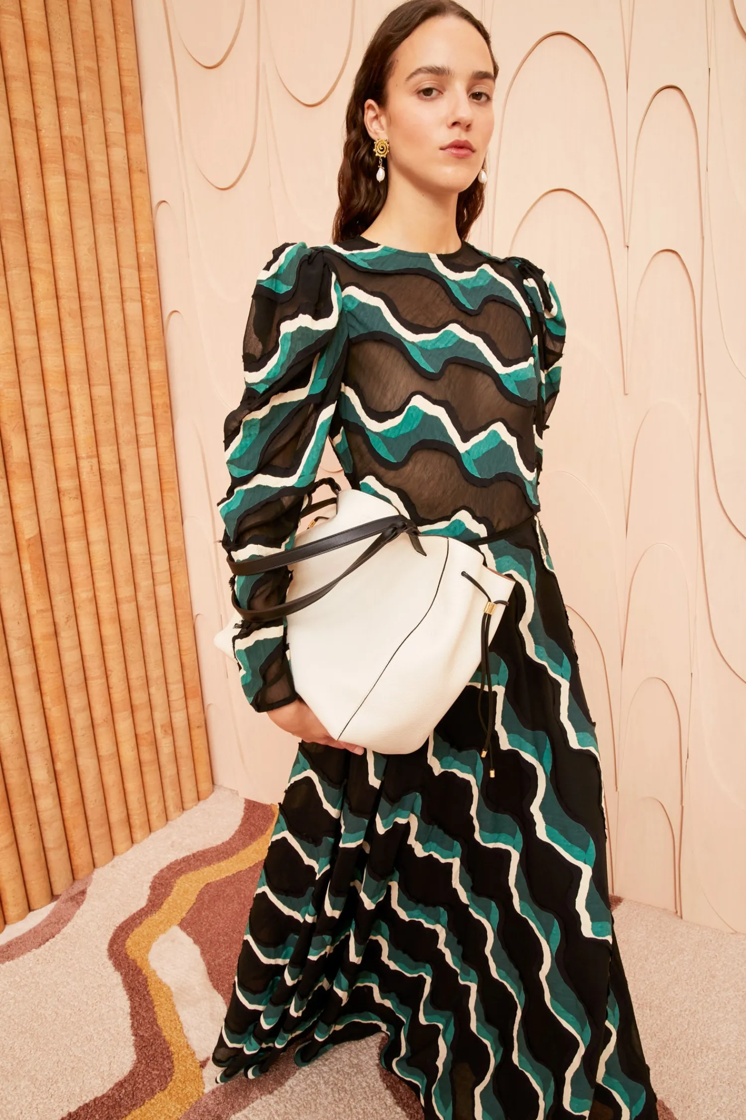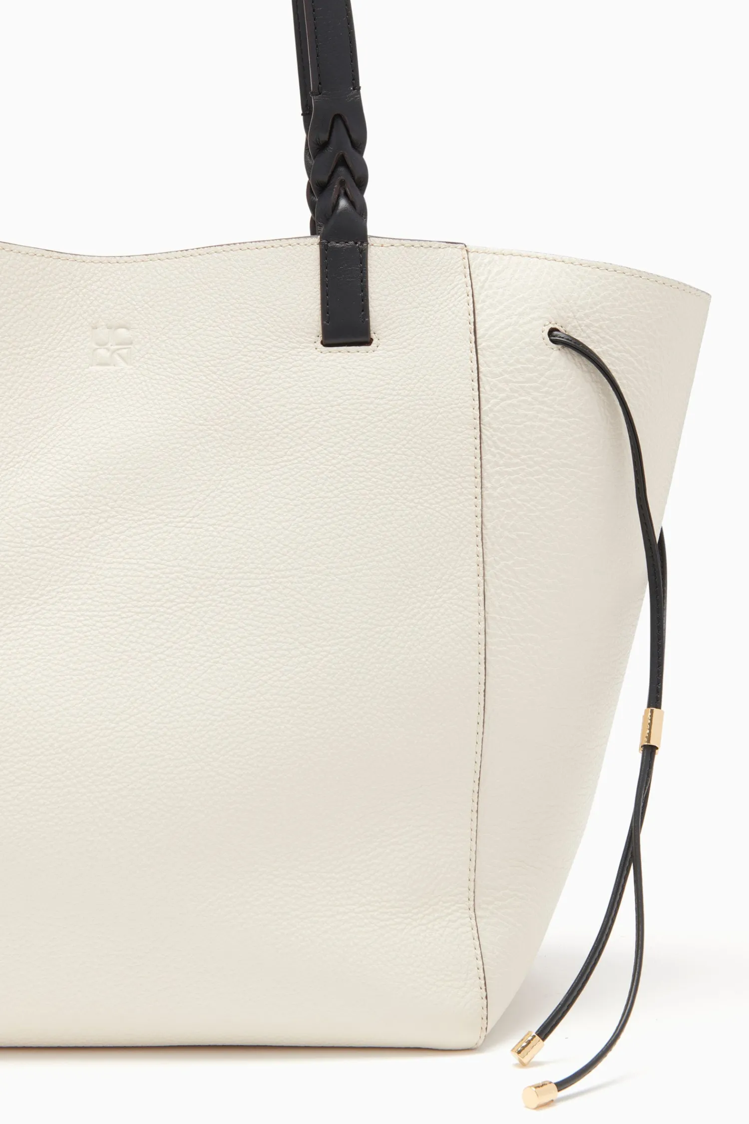 The Alma Everyday Tote is a wear-everywhere bag reimagined for Pre-Spring ‘24 in a black and white colorway with hammered brass hardware. This textured leather bag is the perfect day size—spacious but still compact and elegant. It features exquisite braided detailing at the handles and is lined in suede.
