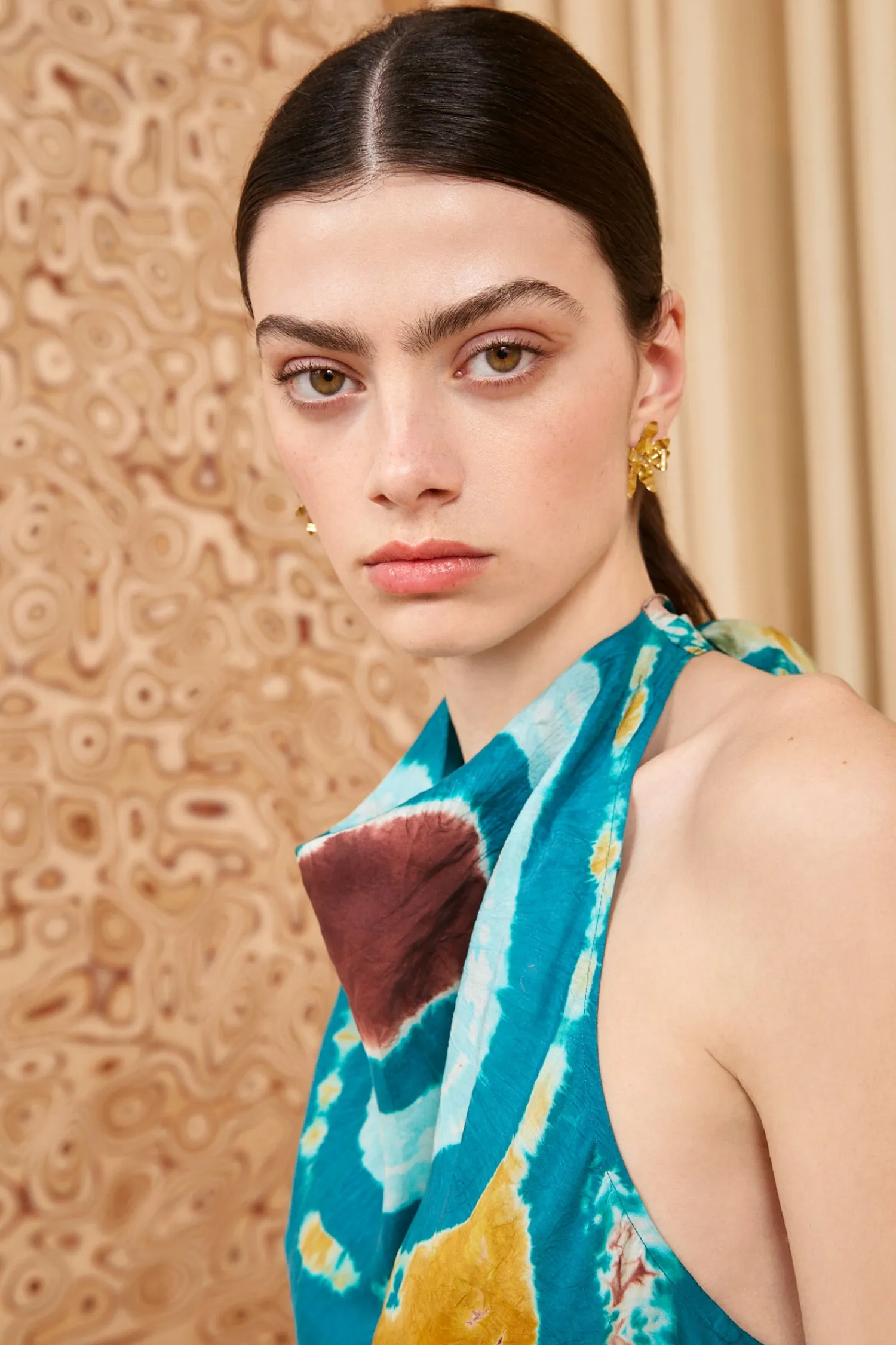 The Assa Dress is impeccably hand-dyed by our artisan partners—a women’s cooperative located in Bangalore on a rehabilitated coconut nursery that’s dedicated to consciously crafted textiles. Made from lightweight silk habotai, female artisans carefully hand-tie and dye the fabric, creating a one-of-a-kind fusion of jewel tones with blue, yellow, and red. This midi silhouette features a cowl neckline and a softly gathered skirt. It fastens with ties and a button closure at the halter neck.