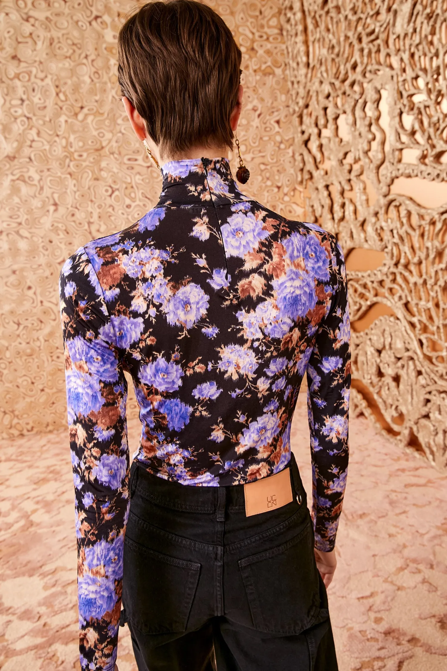 Featured in Look 23 of our Autumn/Winter 2024 runway show, our signature Aurelia Turtleneck in lightweight tricot jersey is a forever favorite silhouette, featured in this season’s dynamic Iris floral print with dreamy purple hues. This long-sleeve top has a close fit that makes it perfect for layering or wearing on its own, while its high neck adds a touch of elegance.