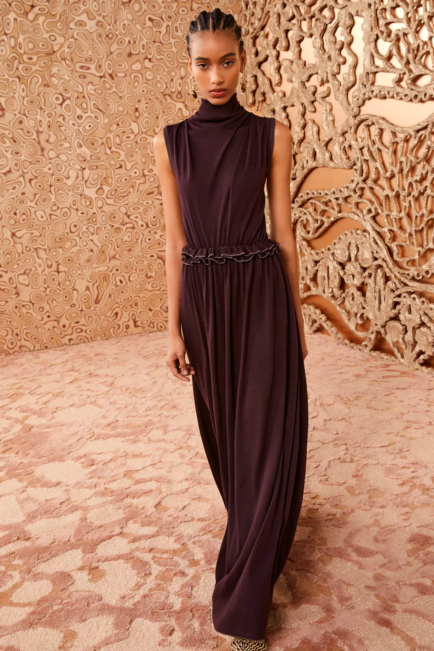 Soft and effortless, our Gemma Dress is made from lightweight organic wool-jersey in a rich shade of mahogany red. Perfect for day to evening, this sleeveless silhouette is softly draped at the neck and is traced with delicate ruffles at the waist.