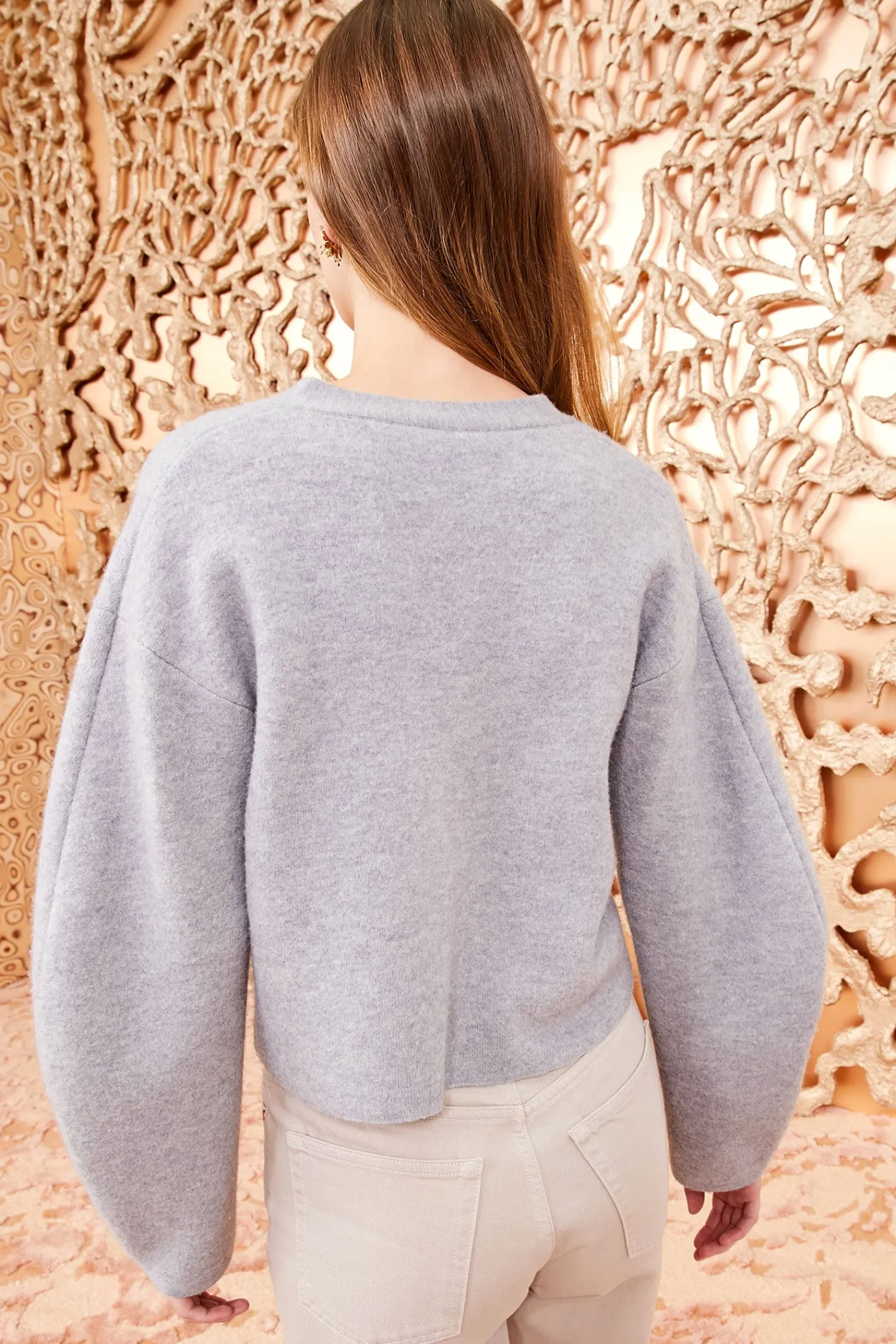 Soft and cocooning, our Hadley Cardigan is made from felted, superfine merino wool in a soft and ethereal shade of gray. This essential layer has a V-neckline, is slightly cropped, and fastens with tonal buttons through the front.