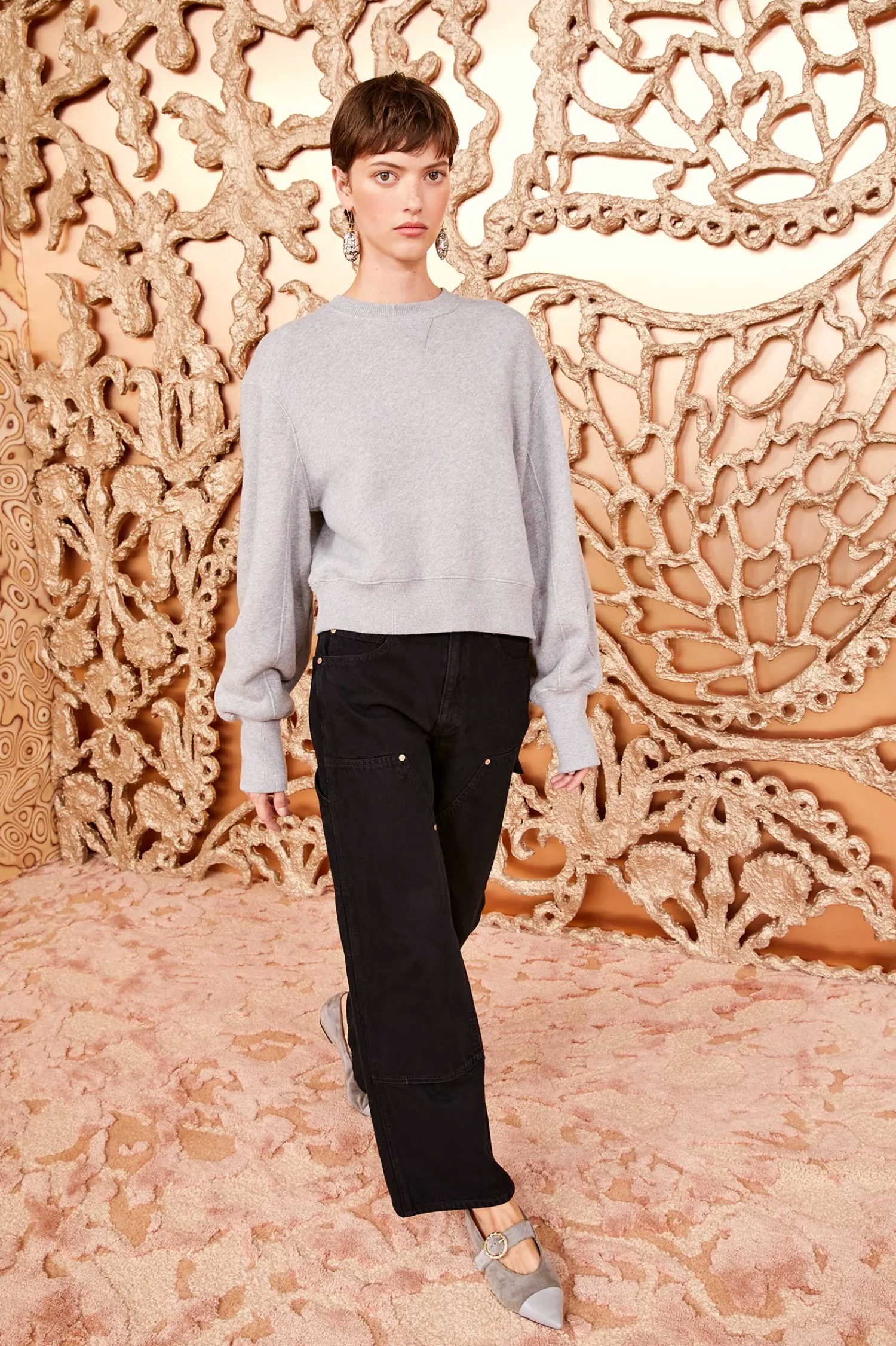 Our Lumi Pullover is made from our new looped-back fleece, a luxurious knit made from organic cotton. Equally refined and sportif, this cozy crewneck has a relaxed fit with drop shoulders and long sleeves that are elegantly cinched for volume. The versatile Heather gray matches your favorite separates.